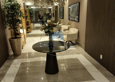 Apto com 2 suítes, sala 2 ambientes com varanda gourmet com churrasqueira, toda envidraçada e com tela de proteção, lavabo, cozinha com armários, área de serviço e área técnica, suítes com piso vinílico e sala com porcelanato, 1 das suítes com armário planejado. 1 vaga de garagem demarcada